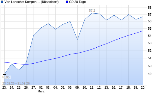 Mit dem Rücksetzer auf 55,00 EUR hat die Van Lanschot Kempen-Aktie am 20.03.2026 die 20-Tage-Linie nach unten gekreuzt.Die Van Lanschot Kempen-Aktie befindet sich seit dem ...weiterlesen