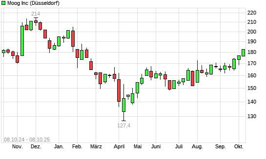 Mit dem Anstieg auf 179,50 EUR hat die Moog-Aktie (ISIN US6153942023) am 07.10.2025 ein neues 6-Monats-Hoch erreicht und damit den Kurs vom 03.10.2025 eingestellt.Die Moog-Aktie befindet sich ...weiterlesen