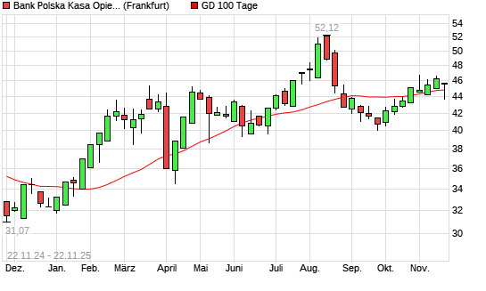 Mit dem Rücksetzer auf 44,47 EUR hat die Bank Pekao-Aktie am 21.11.2025 die 100-Tage-Linie nach unten gekreuzt.Die Bank Pekao-Aktie befindet sich seit dem 02.10.2025 im langfristigen Aufwärtstrend ...weiterlesen