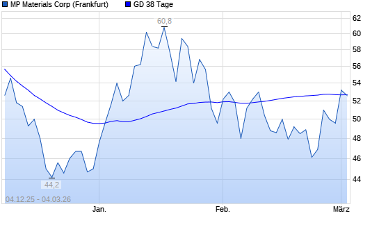 Mit dem Rücksetzer auf 52,60 EUR hat die MP Materials-Aktie am 03.03.2026 die 38-Tage-Linie nach unten gekreuzt.Die MP Materials-Aktie befindet sich seit dem 02.03.2026 ...weiterlesen