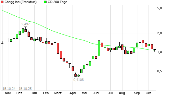 Mit dem Rücksetzer auf 1,03 EUR hat die Chegg-Aktie am 14.10.2025 die 200-Tage-Linie nach unten gekreuzt.Die Chegg-Aktie befand sich seit dem 04.09.2025 im langfristigen Aufwärtstrend und ...weiterlesen