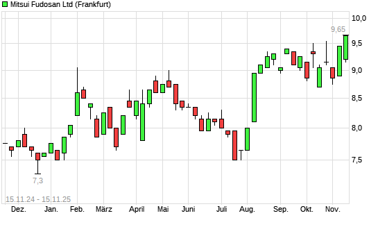 Mit dem Anstieg auf 9,65 EUR hat die Mitsui Fudosan-Aktie (ISIN JP3893200000) am 14.11.2025 ein neues 12-Monats-Hoch erreicht und damit den Kurs vom 23.10.2025 eingestellt.Die Mitsui Fudosan-Aktie ...weiterlesen