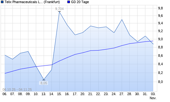 Mit dem Rücksetzer auf 8,88 EUR hat die Telix Pharmaceuticals-Aktie am 03.11.2025 die 20-Tage-Linie nach unten gekreuzt.Die Telix Pharmaceuticals-Aktie befindet sich seit dem 13.06.2025 ...weiterlesen