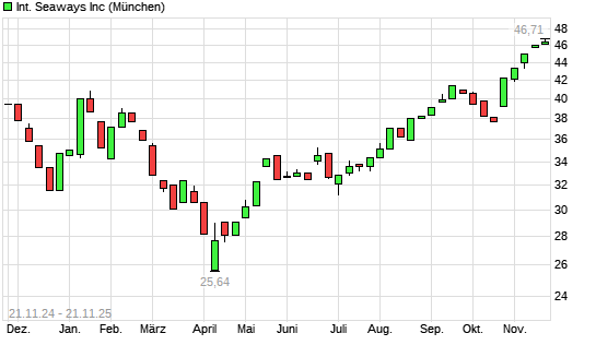 Mit dem Anstieg auf 47,10 EUR hat die International Seaways-Aktie (ISIN MHY410531021) am 20.11.2025 ein neues 12-Monats-Hoch erreicht und damit den Kurs vom 18.11.2025 eingestellt.Die International ...weiterlesen