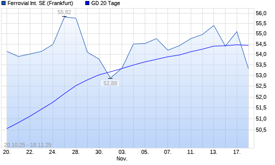 Mit dem Anstieg auf 55,10 EUR hat die Ferrovial-Aktie am 17.11.2025 die 20-Tage-Linie nach oben gekreuzt.Die Ferrovial-Aktie befindet sich seit dem 15.04.2025 im langfristigen Aufwärtstrend ...weiterlesen