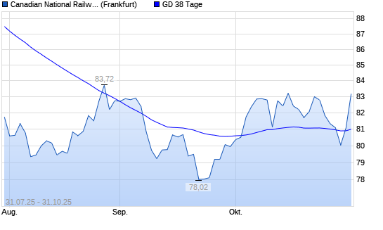 Mit dem Anstieg auf 81,08 EUR hat die Canadian National Railway-Aktie am 30.10.2025 die 38-Tage-Linie nach oben gekreuzt.Die Canadian National Railway-Aktie befindet sich seit dem 17.06.2024 ...weiterlesen