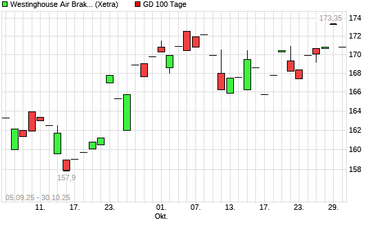 Mit dem Rücksetzer auf 169,05 EUR hat die Wabtec-Aktie am 29.10.2025 die 100-Tage-Linie nach unten gekreuzt.Die Wabtec-Aktie befindet sich seit dem 28.10.2025 im langfristigen Abwärtstrend ...weiterlesen