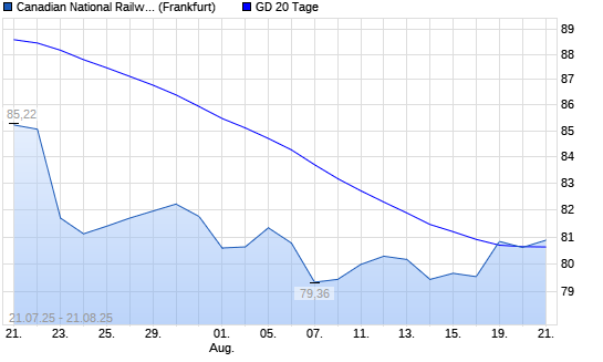 Mit dem Rücksetzer auf 80,62 EUR hat die Canadian National Railway-Aktie am 20.08.2025 die 20-Tage-Linie nach unten gekreuzt.Die Canadian National Railway-Aktie befindet sich seit dem 17.06.2024 ...weiterlesen