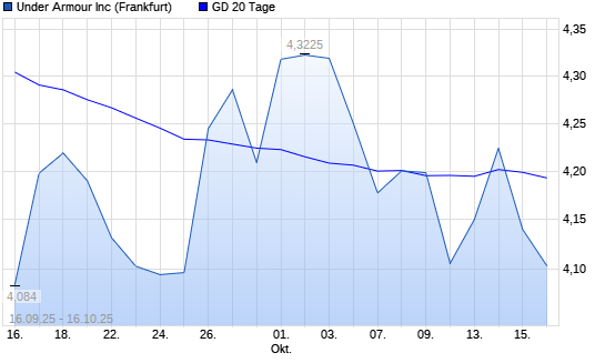 Mit dem Rücksetzer auf 4,14 EUR hat die Under Armour-Aktie am 15.10.2025 die 20-Tage-Linie nach unten gekreuzt.Die Under Armour-Aktie befindet sich seit dem 06.02.2025 im langfristigen ...weiterlesen