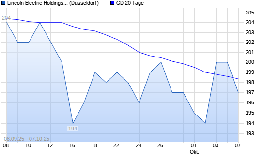 Mit dem Anstieg auf 202,00 EUR hat die Lincoln Electric-Aktie am 06.10.2025 die 20-Tage-Linie nach oben gekreuzt.Die Lincoln Electric-Aktie befindet sich seit dem 03.07.2025 im langfristigen ...weiterlesen