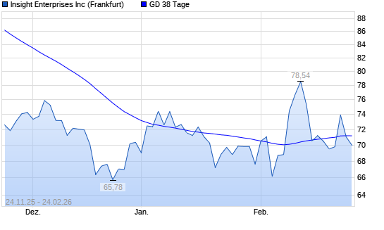 Mit dem Rücksetzer auf 71,06 EUR hat die Insight Enterprises-Aktie am 23.02.2026 die 38-Tage-Linie nach unten gekreuzt.Die Insight Enterprises-Aktie befindet sich seit dem ...weiterlesen