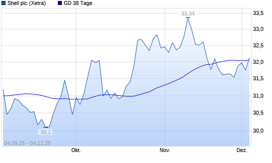 Mit dem Rücksetzer auf 31,87 EUR hat die Shell (ex Royal Dutch Shell) A-Aktie am 03.12.2025 die 38-Tage-Linie nach unten gekreuzt.Die Shell (ex Royal Dutch Shell) A-Aktie befindet sich ...weiterlesen