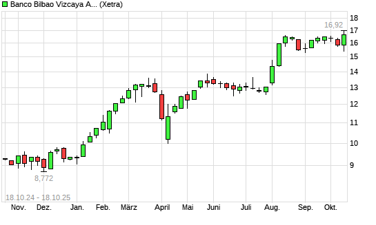 Mit dem Anstieg auf 16,71 EUR hat die BBVA-Aktie (ISIN ES0113211835) am 17.10.2025 ein neues All-Time-High erreicht und damit den Kurs vom 15.08.2025 eingestellt.Die BBVA-Aktie befindet sich ...weiterlesen