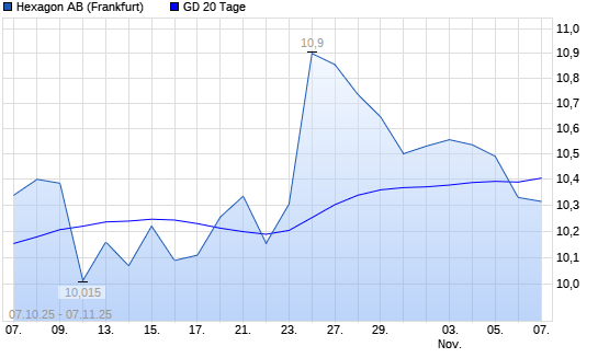 Mit dem Rücksetzer auf 10,33 EUR hat die Hexagon-Aktie am 06.11.2025 die 20-Tage-Linie nach unten gekreuzt.Die Hexagon-Aktie befindet sich seit dem 05.09.2025 im langfristigen Aufwärtstrend ...weiterlesen
