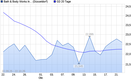 Mit dem Rücksetzer auf 22,02 EUR hat die Bath & Body Works-Aktie am 21.10.2025 die 20-Tage-Linie nach unten gekreuzt.Die Bath & Body Works-Aktie befindet sich seit dem 04.03.2025 im ...weiterlesen