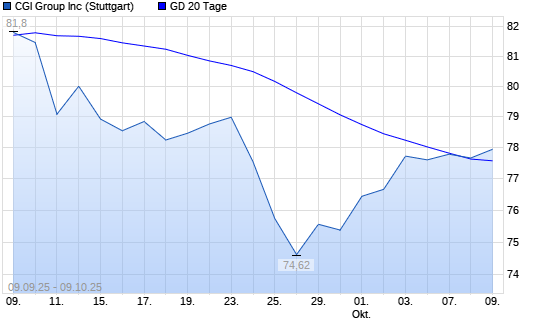 Mit dem Anstieg auf 78,22 EUR hat die CGI Group-Aktie am 08.10.2025 die 20-Tage-Linie nach oben gekreuzt.Die CGI Group-Aktie befindet sich seit dem 28.02.2025 im langfristigen Abwärtstrend und ...weiterlesen