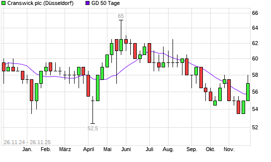 Mit dem Anstieg auf 57,50 EUR hat die CRANSWICK-Aktie am 25.11.2025 die 50-Tage-Linie nach oben gekreuzt.Die CRANSWICK-Aktie befindet sich seit dem 29.10.2025 im langfristigen Abwärtstrend und ...weiterlesen