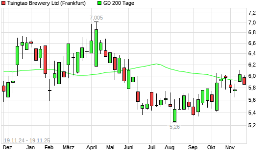 Mit dem Rücksetzer auf 5,91 EUR hat die Tsingtao Brewery-Aktie am 18.11.2025 die 200-Tage-Linie nach unten gekreuzt.Die Tsingtao Brewery-Aktie befand sich seit dem 10.11.2025 im langfristigen ...weiterlesen