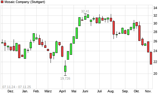Mit dem Rücksetzer auf 22,35 EUR hat die Mosaic-Aktie (ISIN US61945C1036) am 06.11.2025 ein neues 6-Monats-Tief erreicht und damit den Kurs vom 04.11.2025 eingestellt.Die Mosaic-Aktie befindet ...weiterlesen
