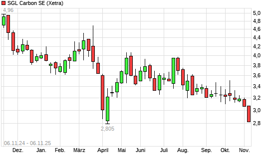 Mit dem Rücksetzer auf 2,87 EUR hat die SGL Carbon-Aktie (ISIN DE0007235301) am 05.11.2025 ein neues 3-Jahres-Tief erreicht und damit den Kurs vom 04.11.2025 eingestellt.Die SGL Carbon-Aktie ...weiterlesen