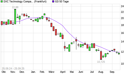 Mit dem Rücksetzer auf 11,48 EUR hat die DXC Technology-Aktie am 24.09.2025 die 50-Tage-Linie nach unten gekreuzt.Die DXC Technology-Aktie befindet sich seit dem 24.02.2025 im langfristigen ...weiterlesen