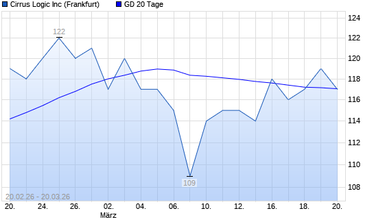 Mit dem Anstieg auf 119,00 EUR hat die Cirrus Logic-Aktie am 19.03.2026 die 20-Tage-Linie nach oben gekreuzt.Die Cirrus Logic-Aktie befindet sich seit dem 14.08.2025 im ...weiterlesen