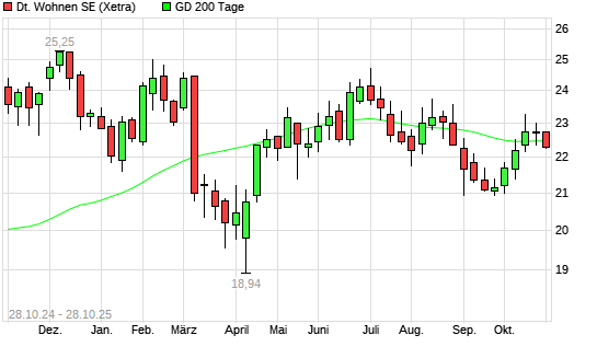 Mit dem Rücksetzer auf 22,15 EUR hat die Deutsche Wohnen-Aktie am 27.10.2025 die 200-Tage-Linie nach unten gekreuzt.Die Deutsche Wohnen-Aktie befand sich seit dem 13.10.2025 im langfristigen ...weiterlesen