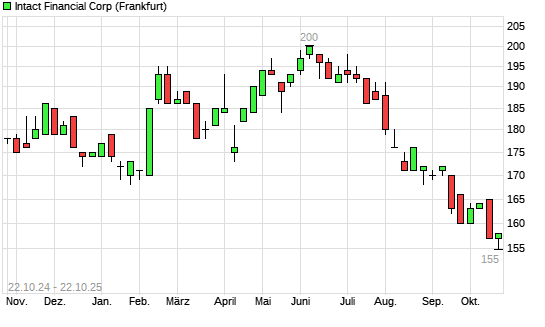 Mit dem Rücksetzer auf 155,00 EUR hat die Intact Financial-Aktie (ISIN CA45823T1066) am 21.10.2025 ein neues 12-Monats-Tief erreicht und damit den Kurs vom 17.10.2025 eingestellt.Die Intact ...weiterlesen