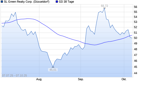 Mit dem Rücksetzer auf 50,20 EUR hat die SL Green Realty-Aktie am 06.10.2025 die 38-Tage-Linie nach unten gekreuzt.Die SL Green Realty-Aktie befindet sich seit dem 17.09.2025 im langfristigen ...weiterlesen