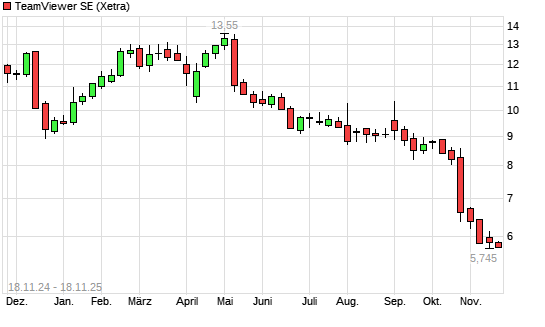 Mit dem Rücksetzer auf 5,76 EUR hat die TeamViewer-Aktie (ISIN DE000A2YN900) am 17.11.2025 ein neues All-Time-Low erreicht und damit den Kurs vom 14.11.2025 eingestellt.Die TeamViewer-Aktie ...weiterlesen