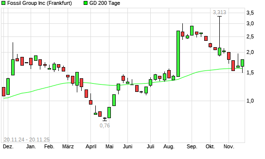 Mit dem Anstieg auf 1,60 EUR hat die Fossil-Aktie am 19.11.2025 die 200-Tage-Linie nach oben gekreuzt.Die Fossil-Aktie befand sich seit dem 18.11.2025 im langfristigen Abwärtstrend und hat in ...weiterlesen