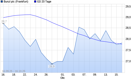 Mit dem Rücksetzer auf 27,74 EUR hat die Bunzl-Aktie am 15.10.2025 die 20-Tage-Linie nach unten gekreuzt.Die Bunzl-Aktie befindet sich seit dem 04.03.2025 im langfristigen Abwärtstrend ...weiterlesen