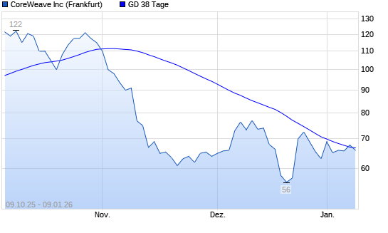 Mit dem Anstieg auf 67,80 EUR hat die CoreWeave-Aktie am 08.01.2026 die 38-Tage-Linie nach oben gekreuzt.Der Abstand zur 200-Tage-Linie beträgt aktuell +0,00%. ##trendBox## Die Coreweave-Aktie ...weiterlesen