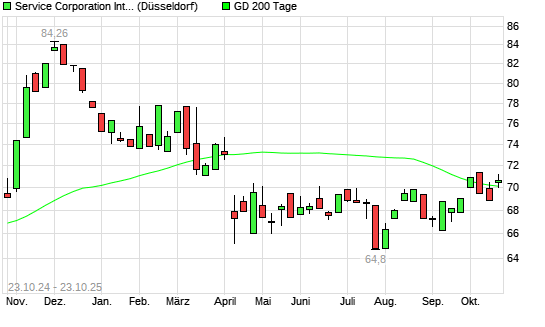 Mit dem Anstieg auf 71,12 EUR hat die Service Corporation International-Aktie am 22.10.2025 die 200-Tage-Linie nach oben gekreuzt.Die Service Corporation International-Aktie befand sich seit ...weiterlesen