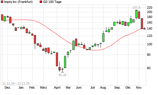 Mit dem Anstieg auf 145,10 EUR hat die Impinj-Aktie am 10.11.2025 die 100-Tage-Linie nach oben gekreuzt.Die Impinj-Aktie befindet sich seit dem 31.07.2025 im langfristigen Aufwärtstrend und ...weiterlesen