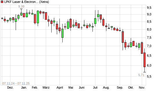 Mit dem Rücksetzer auf 6,03 EUR hat die LPKF Laser-Aktie (ISIN DE0006450000) am 06.11.2025 ein neues 5-Jahres-Tief erreicht und damit den Kurs vom 05.11.2025 eingestellt.Die LPKF Laser-Aktie ...weiterlesen