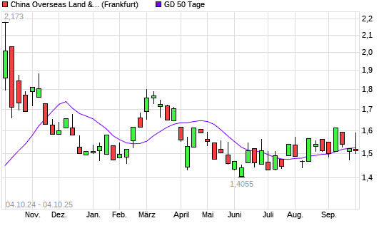 Mit dem Rücksetzer auf 1,51 EUR hat die China Overseas Land & Investment-Aktie am 03.10.2025 die 50-Tage-Linie nach unten gekreuzt.Die China Overseas Land & Investment-Aktie befindet ...weiterlesen