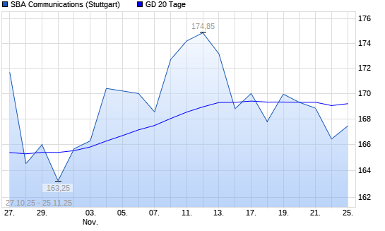 Mit dem Rücksetzer auf 166,85 EUR hat die SBA Communications-Aktie am 24.11.2025 die 20-Tage-Linie nach unten gekreuzt.Die SBA Communications-Aktie befindet sich seit dem 23.07.2025 im ...weiterlesen