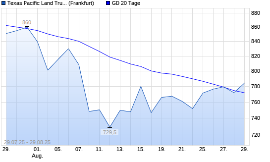Mit dem Rücksetzer auf 772,00 EUR hat die Texas Pacific Land-Aktie am 28.08.2025 die 20-Tage-Linie nach unten gekreuzt.Die Texas Pacific Land-Aktie befindet sich seit dem 23.05.2025 im ...weiterlesen