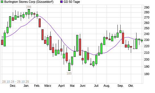 Mit dem Anstieg auf 232,00 EUR hat die BURLINGTON STORES-Aktie am 27.10.2025 die 50-Tage-Linie nach oben gekreuzt.Die BURLINGTON STORES-Aktie befindet sich seit dem 24.10.2025 im langfristigen ...weiterlesen