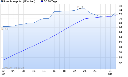 Mit dem Rücksetzer auf 69,41 EUR hat die Pure Storage-Aktie am 01.10.2025 die 20-Tage-Linie nach unten gekreuzt.Die Pure Storage-Aktie befindet sich seit dem 28.08.2025 im langfristigen ...weiterlesen
