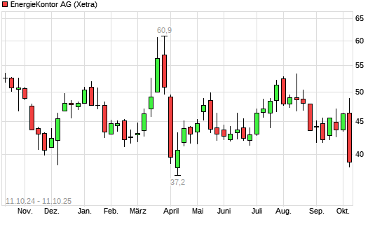 Mit dem Rücksetzer auf 39,15 EUR hat die Energiekontor-Aktie (ISIN DE0005313506) am 10.10.2025 ein neues 3-Jahres-Tief erreicht und damit den Kurs vom 04.04.2025 eingestellt.Die Energiekontor-Aktie ...weiterlesen