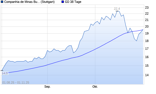 Mit dem Anstieg auf 19,60 EUR hat die Cia de Minas Buenaventura-Aktie am 31.10.2025 die 38-Tage-Linie nach oben gekreuzt.Die Cia de Minas Buenaventura-Aktie befindet sich seit dem 05.05.2025 ...weiterlesen
