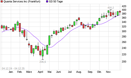 Mit dem Rücksetzer auf 372,60 EUR hat die Quanta Services-Aktie am 03.12.2025 die 50-Tage-Linie nach unten gekreuzt.Die Quanta Services-Aktie befindet sich seit dem 02.05.2025 im langfristigen ...weiterlesen