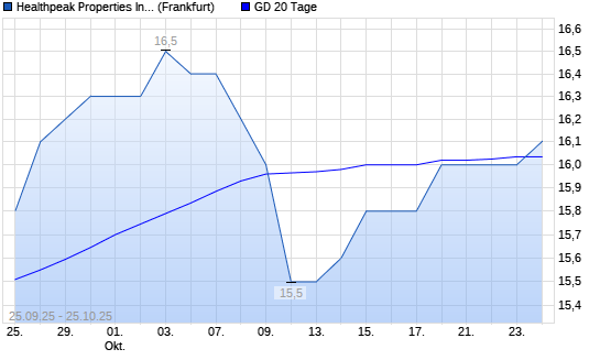 Mit dem Anstieg auf 16,10 EUR hat die Healthpeak Properties-Aktie am 24.10.2025 die 20-Tage-Linie nach oben gekreuzt.Die Healthpeak Properties-Aktie befindet sich seit dem 03.03.2025 im langfristigen ...weiterlesen