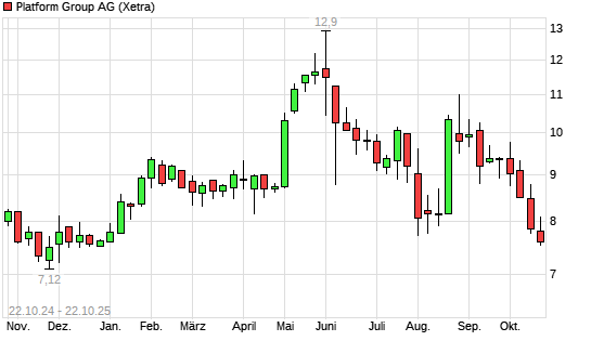 Mit dem Rücksetzer auf 7,58 EUR hat die Platform Group-Aktie (ISIN DE000A2QEFA1) am 21.10.2025 ein neues 6-Monats-Tief erreicht und damit den Kurs vom 17.10.2025 eingestellt.Die Platform ...weiterlesen