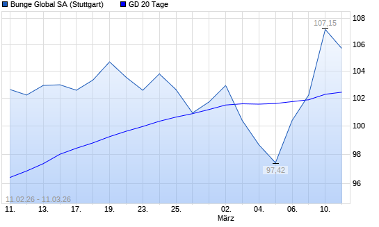 Mit dem Anstieg auf 102,95 EUR hat die Bunge-Aktie am 10.03.2026 die 20-Tage-Linie nach oben gekreuzt.Die Bunge-Aktie befindet sich seit dem 01.10.2025 im langfristigen Aufwärtstrend ...weiterlesen