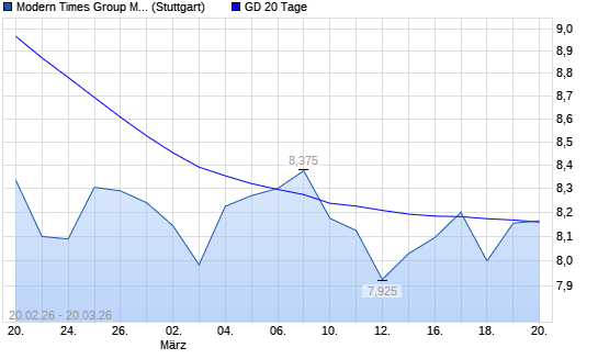 Mit dem Rücksetzer auf 7,90 EUR hat die Modern Times Group B-Aktie am 19.03.2026 die 20-Tage-Linie nach unten gekreuzt.Die Modern Times Group B-Aktie befindet sich seit dem ...weiterlesen