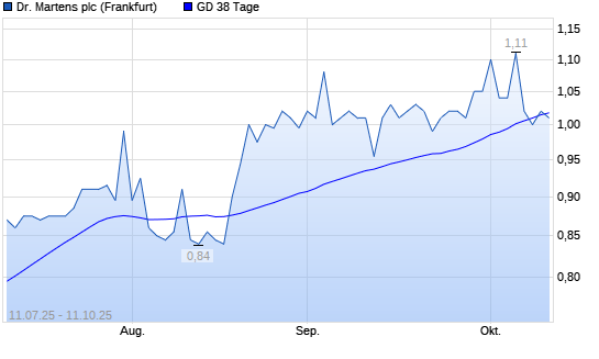 Mit dem Rücksetzer auf 1,01 EUR hat die Dr. Martens-Aktie am 10.10.2025 die 38-Tage-Linie nach unten gekreuzt.Die Dr. Martens-Aktie befindet sich seit dem 05.06.2025 im langfristigen Aufwärtstrend ...weiterlesen