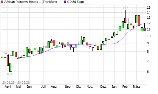 Mit dem Rücksetzer auf 10,80 EUR hat die African Rainbow Minerals-Aktie am 19.03.2026 die 50-Tage-Linie nach unten gekreuzt.Die African Rainbow Minerals-Aktie befindet sich seit ...weiterlesen